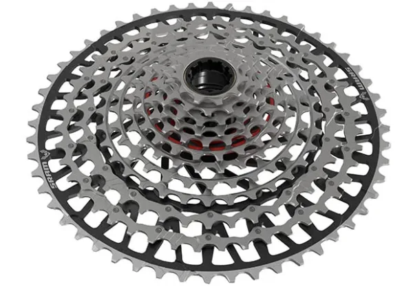 De sua enorme faixa de marchas de 520%, a engrenagem de 52 dentes diminui com progressão de marcha aprimorada com engrenagens de 44 e 38 dentes na extremidade inferior (em comparação com o cassete Eagle de 10-52 dentes). Dura muito mais e oferece mais precisão com o uso de ângulos de corrente menos extremos em toda a gama. Apresentando um Setup Cog claramente marcado, a instalação é simples e infalível. Utiliza o design X-Dome usinado em aço de ferramenta endurecido para o cluster e aço estampado 38T e 44Tcogs são fixados na 12ª marcha de alumínio mais leve. (Aranha Engrenagem)